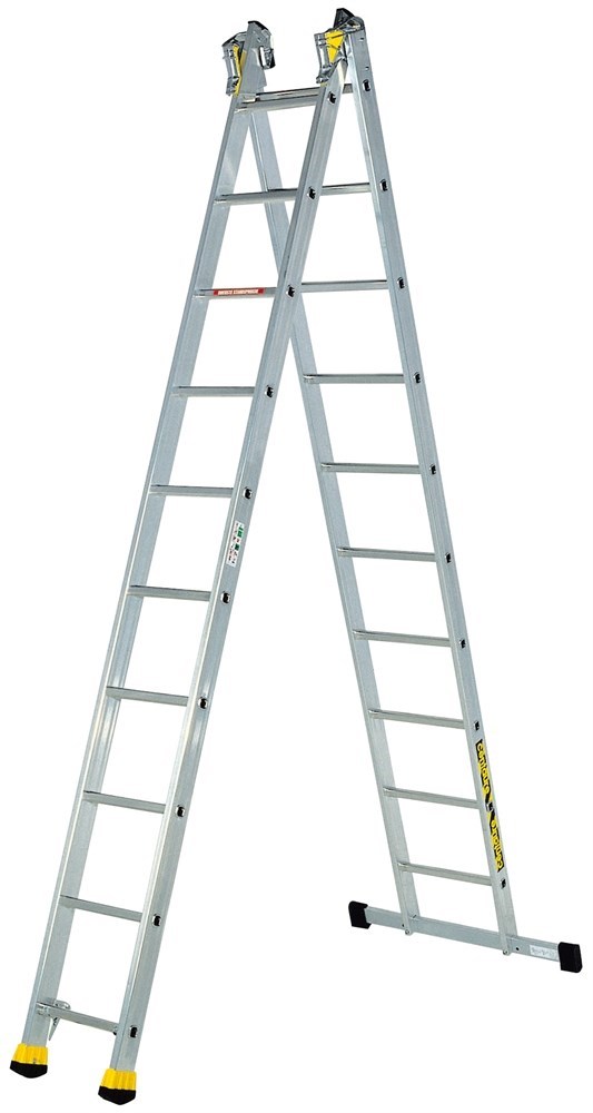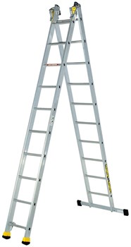 Алюминиевая двухсекционная лестница Centaure AT2 2x14 420214 – многофункциональная лестница для различных ремонтных и бытовых работ. Ступени со сглаженными краями обеспечивают максимальный комфорт при подъеме и спуске. Артикуляционный узел из алюминиевого сплава устойчив к ударной нагрузке и предусмотрен для интенсивного использования. Артикуляционные узлы крепятся винтами. Простая установка лестницы: - специальный штырь в направляющем пазе - автоматическая блокировка - контроль блокировки: позиция штыря во время защелкивания легко отслеживается. Пластиковые вставки обеспечивают легкое скольжение по алюминию с пониженным коэффициентом трения. Безопасная блокировка секций благодаря надежному алюминиевому крюку с замком. Большие нескользящие башмаки из композитного материала. Закрытый алюминиевый профиль для продолжительного использования. Алюминиевые нескользящие ступени 28 х 25.5 мм. Расстояние между ступенями 280 мм. Надёжное крепление ступеней к направляющим путём тройного зажима и фальцевания.