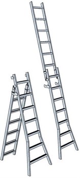 Алюминиевая двухсекционная лестница ЛСМ-1,7 5 ступеней может применяться как приставная, выдвижная лестница и свободностоящая стремянка. Шестнадцатикратное соединение перекладин с боковинами обеспечивает особо высокую стабильность и долговечность. Со всех сторон профилированные перекладины обеспечивают надежный подъем и работу. Широкая поперечная траверса с опорными наконечниками из двух компонентов обеспечивает высокую степень безопасности. Самозахватывающие фиксирующие крюки предотвращает произвольное разъединение во время транспортировки. Во избежание скольжения, а также с целью изоляции опоры, лестницы имеют резиновые оконцеватели.