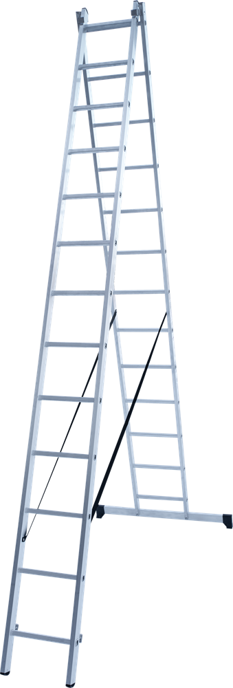 Алюминиевая двухсекционная лестница Новая Высота NV 122 2x13 1220213 обеспечивает прочность и надёжность при небольшом весе изделия. Возможно пользование как приставной лестницей, приставной выдвижной лестницей или стремянкой.