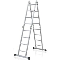 Телескопическая шарнирная лестница Elkop 4x4 M4X4AL изготавливается из специальных секций, которые соединяются между собой специальными шарнирами, при этом каждая секция может изменять свое положение. Подвижность соединений дает возможность за короткое время сделать из лестницы обычную стремянку. Лестница оказывается полезна не только профессиональным строителям, но и любителям, для работы дома, на загородных участках и дачах. Имеющиеся на лестнице противоскользящие опоры благодаря специальному материалу обеспечивают крепкое, надежное сцепление с поверхностью. Конструкция легко и быстро разбирается, легко умещается в багажнике любого автомобиля, благодаря чему невероятно удобна. Алюминиевая лестница является многофункциональной: она может применяться как двусторонняя стремянка, как рабочая платформа, в качестве приставной лестницы и как две отдельных двусторонних стремянки. Лестница безопасна и надежна в любой ситуации при нагрузке до 150 кг.