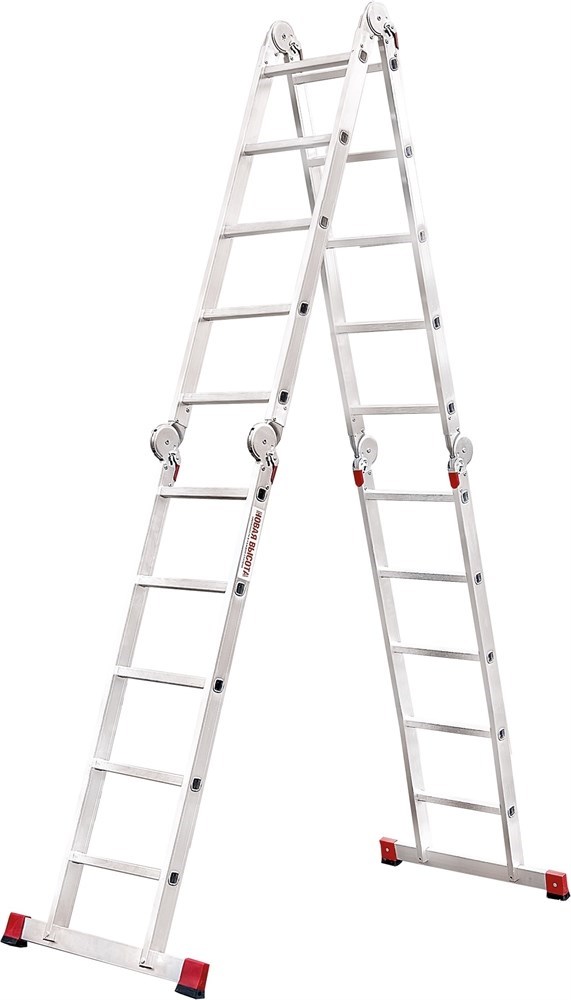 Алюминиевая лестница трансформер Новая Высота 4х5 604405 обладает повышенной прочностью и надёжностью при небольшом весе, простотой установки и высоким уровенем комфорта. Отличительная особенность таких лестниц-трансформеров - широта возможных позиций, в которых их можно использовать, а также их компактность, что облегчает их перемещение и транспортировку. Регулировка положения лестницы осуществляется с помощью стальных шарниров, которые обеспечивают надежную автоматическую фиксацию выбранного положения лестницы. В целях удобства и безопасности при эксплуатации, лестница оснащена противоскользящими рельефными ступенями.