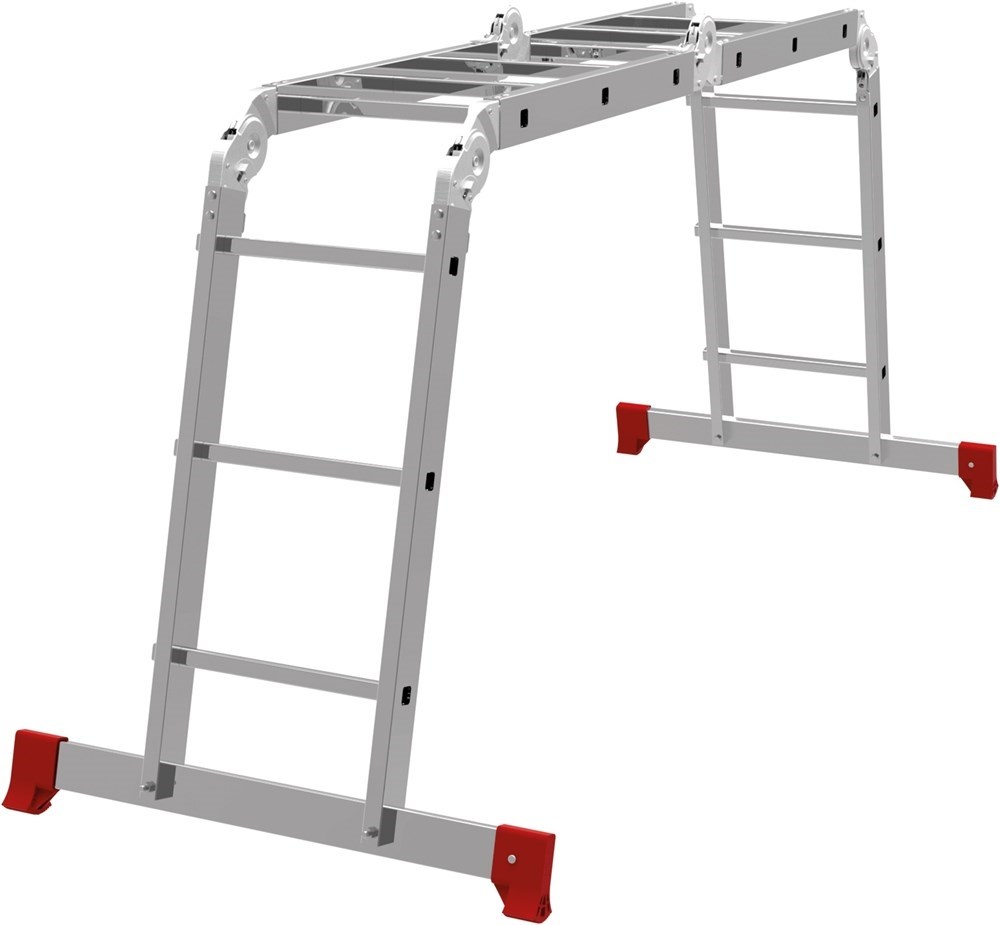 Алюминиевая лестница трансформер Новая Высота NV 132 4х3 1320403 обладает повышенной прочностью и надёжностью при небольшом весе, простотой установки и высоким уровенем комфорта. Отличительная особенность таких лестниц-трансформеров - широта возможных позиций, в которых их можно использовать, а также их компактность, что облегчает их перемещение и транспортировку. Регулировка положения лестницы осуществляется с помощью стальных шарниров, которые обеспечивают надежную автоматическую фиксацию выбранного положения лестницы. В целях удобства и безопасности при эксплуатации, лестница оснащена противоскользящими рельефными ступенями.