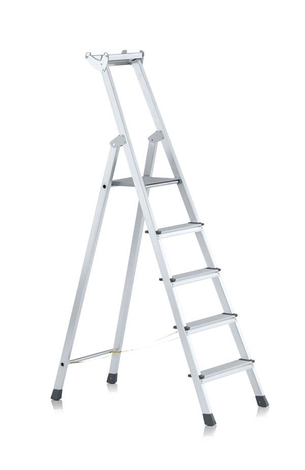 АНАЛОГ Zarges 41225! Алюминиевая стремянка Zarges Z500 5 ступеней 41645 - базовый вариант стоячих лестниц-стремянок со ступеньками в особо легком исполнении и по невысокой цене. Алюминиевые стойки и ступени (естественный цвет). Ступени глубиной 80 мм предотвращают усталость ног при работе. Массивная площадка из литого под давлением алюминия (250 мм x 250 мм). Вместительный алюминиевый лоток для инструмента и материалов. Соединение „ступень-стойка“ тройной клепкой. Противоскользящие пластиковые башмаки. Ступени и стойки из прессованного алюминиевого профиля. Прочные перлоновые стяжные ремни. Габаритная ширина, внизу (м) - 0,48. Высота стойки лестничной/опорной частей (мм) - 42/42.