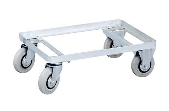Алюминиевая тележка Zarges W 150 40608 - если нужно просто решить "тяжелые" транспортировочные и складские проблемы, то маневренная тележка ZARGES станет незаменимым, экономичным помощником. Алюминиевое шасси, низкое исполнение. Шасси: 2 поворотных ролика и 2 ролика на кронштейнах, диаметр 125 мм, шириной 40 мм, легкоходные, обрезиненные, с подшипниками, с защитой от намотки мусора. Подходят для транспортировки алюминиевых ящиков K 470 / K 450 и K 270.