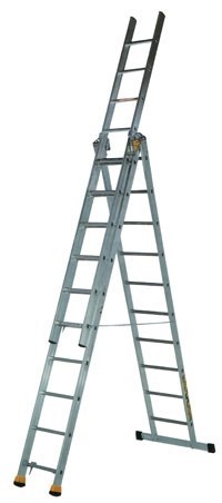 Алюминиевая трехсекционная лестница Centaure AT3 3х10 420310 – многофункциональная лестница для различных ремонтных и бытовых работ. Ступени со сглаженными краями обеспечивают максимальный комфорт при подъеме и спуске. Артикуляционный узел из алюминиевого сплава устойчив к ударной нагрузке и предусмотрен для интенсивного использования. Артикуляционные узлы крепятся винтами. Простая установка лестницы: - специальный штырь в направляющем пазе - автоматическая блокировка - контроль блокировки: позиция штыря во время защелкивания легко отслеживается. Пластиковые вставки обеспечивают легкое скольжение по алюминию с пониженным коэффициентом трения. Безопасная блокировка секций благодаря надежному алюминиевому крюку с замком. Большие нескользящие башмаки из композитного материала. Закрытый алюминиевый профиль для продолжительного использования. Алюминиевые нескользящие ступени 28 х 25.5 мм. Расстояние между ступенями 280 мм. Надёжное крепление ступеней к направляющим путём тройного зажима и фальцевания.