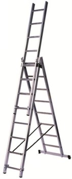 Алюминиевая трехсекционная лестница Centaure СК3 3х10 120310 может использоваться как стремянка или как приставная лестница. Простая установка лестницы в правильное и безопасное рабочее положение благодаря штырю в направляющем пазе. Секционный стопор - крюк из стали с замком безопасности. Нескользящие рифленые ступени. Направляющие и ось из обработанной стали. 2 подпруги безопасности. Максимальная нагрузка 150 кг.