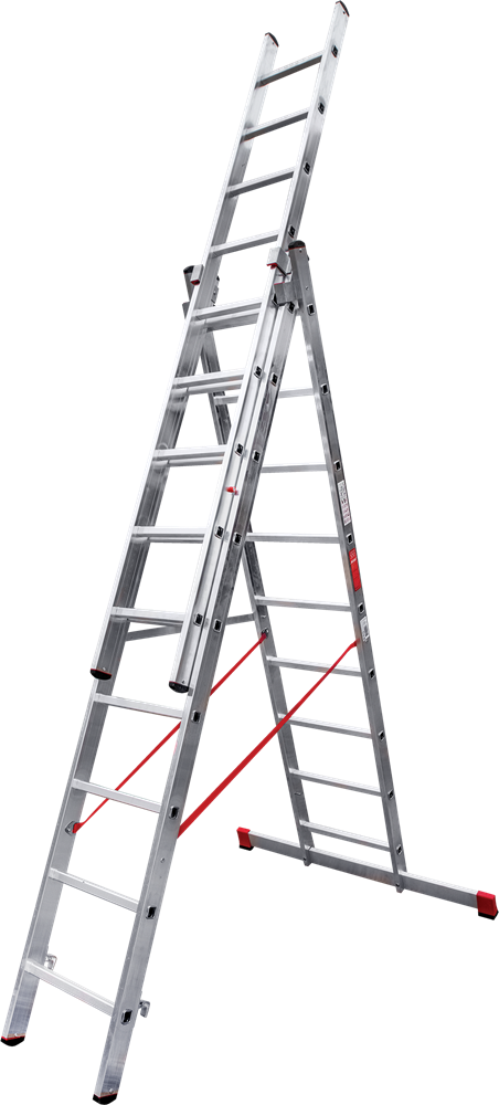 Алюминиевая трехсекционная лестница Новая Высота NV 323 3х9 3230309 может использоваться как приставная лестница, приставная раздвижная двухсекционная лестница, приставная выдвижная трехсекционная лестница, двухсторонняя стремянка и стремянка с выдвижной секцией.