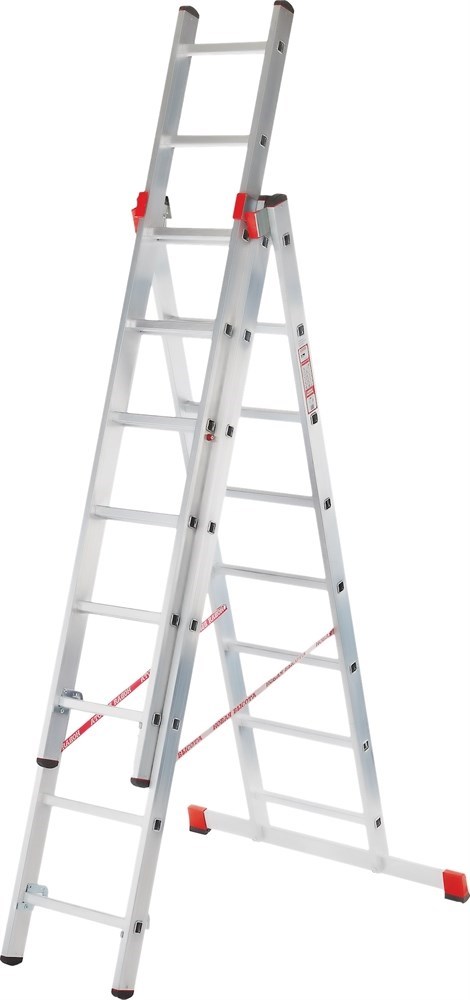 Алюминиевая трехсекционная лестница Новая Высота NV 3231 3х10 3231310 может использоваться как приставная лестница, приставная раздвижная двухсекционная лестница, приставная выдвижная трехсекционная лестница, двухсторонняя стремянка и стремянка с выдвижной секцией.