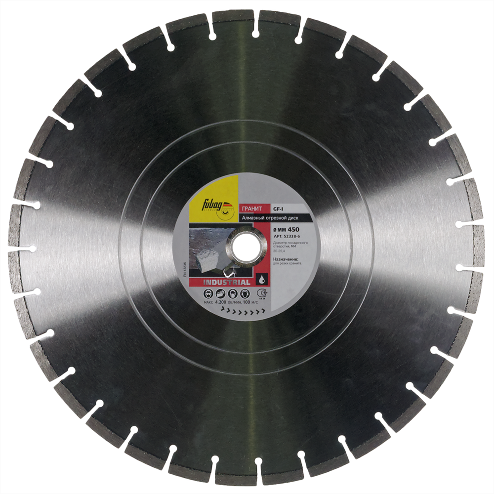 Алмазный диск Fubag GF-I 450x30-25,4мм с сегментной режущей кромкой, предназначен для резки гранита.