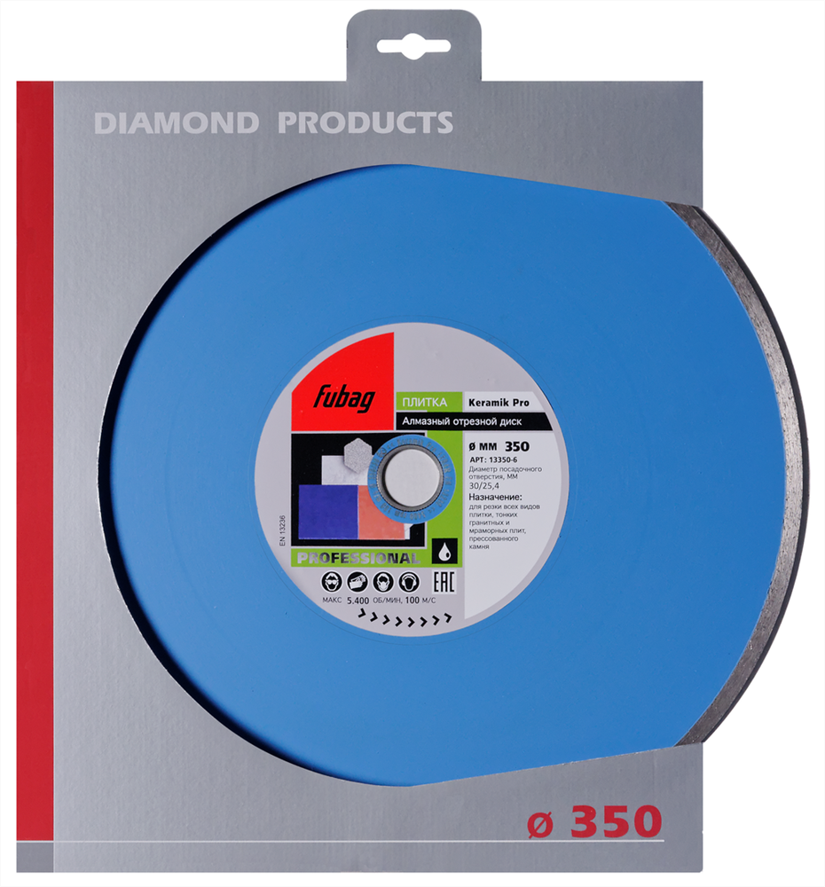 Алмазный диск Fubag Keramik Pro 350x30-25,4мм со сплошной режущей кромкой, предназначен для резки всех видов плитки, тонких гранитных и мраморных плит, прессованного камня.
