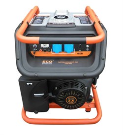 Генератор оснащен электронной системой регулировки напряжения, вольтметр, счетчик мото-часов, предохранитель от перегрузки и низкого уровня масла в картере, 12 V выход, колесный коплект, аккумуляторная батарея.