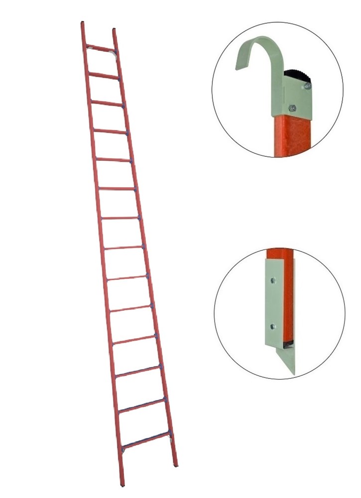 Диэлектрическая приставная лестница Диэлектрик 14 ступеней ЛСПД-5,0 Е МГ К мягкий грунт+крюки