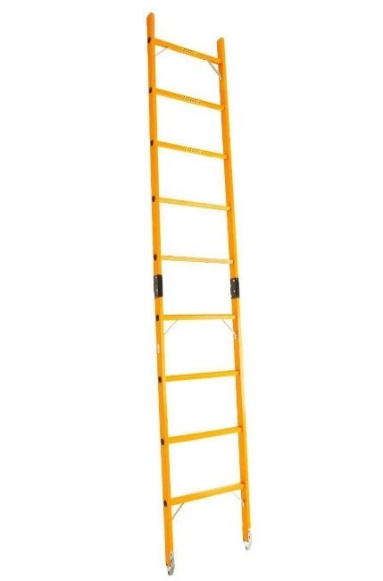 Диэлектрическая приставная лестница ЗЭП 14 ступеней ЛСПС-5,0-55M - это стекловолоконная складная лестница общего применения. Состоит из 3х секций. Изготавливается из упрочненных широких профилей 55M мм. Соединяют секции через специальные узлы болтовыми соединениями. При изменении числа используемых секций, можно регулировать рабочую высоту лестницы. На верхних концах тетив установлены пластиковые заглушки, на нижних - противоскользящие эластополимерные опоры. Лестница оснащена металлическими оконцевателями для работы на мягком грунте.