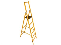 Диэлектрическая стремянка ЗЭП 3 ступени ССС-1,9Ш-55М - наиболее традиционный и самый распространенный вид стремянок. Проста и удобна в эксплуатации. Имеет увеличенную ширину ступени до 95 мм. Рабочая площадка имеет фиксатор из нержавеющей стали. Может использоваться как внутри помещений, так и на открытом воздухе, в суровых климатических условиях. Для изготовления тетивы используется диэлектрический стекловолоконный профиль прямоугольного сечения. На верхних концах тетив установлены пластиковые (ПВД/ПНД) заглушки, на нижних – противоскользящие эластополимерные опоры. Нижняя ступень имеет дополнительное усиление в виде металлических распорок, что повышает прочность конструкции. Ступени изготовлены из профиля 36х26 мм с противоскользящими ребрами. Стремянка оснащена металлическими оконцевателями для работы на мягком грунте