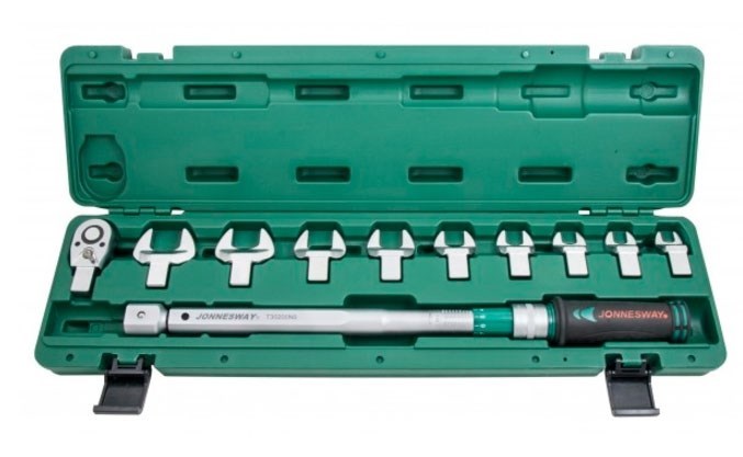 Динамометрический ключ Jonnesway 1/2" DR, со сменными рожковыми насадками 13-30 мм и приводом, 40-200 Нм T30200NS