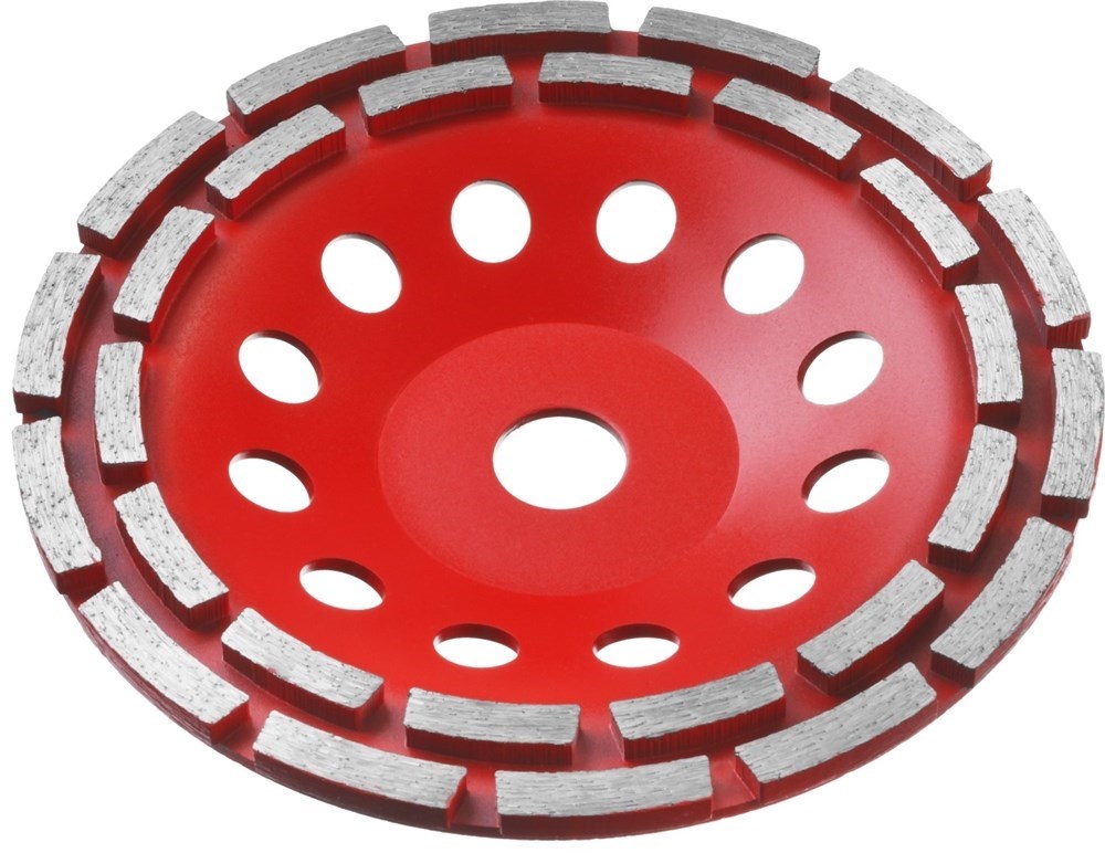 Двухрядная сегментная алмазная чашка Зубр Мастер по бетону 180мм 33376-180 содержит в качестве основного рабочего элемента синтетический алмаз повышенной твердости. Корпус алмазной чашки изготовлен из высокопрочной стали. Каждое изделие проходит строгий контроль качества, особое внимание уделяется сбалансированности, т.к. инструмент работает на больших оборотах.