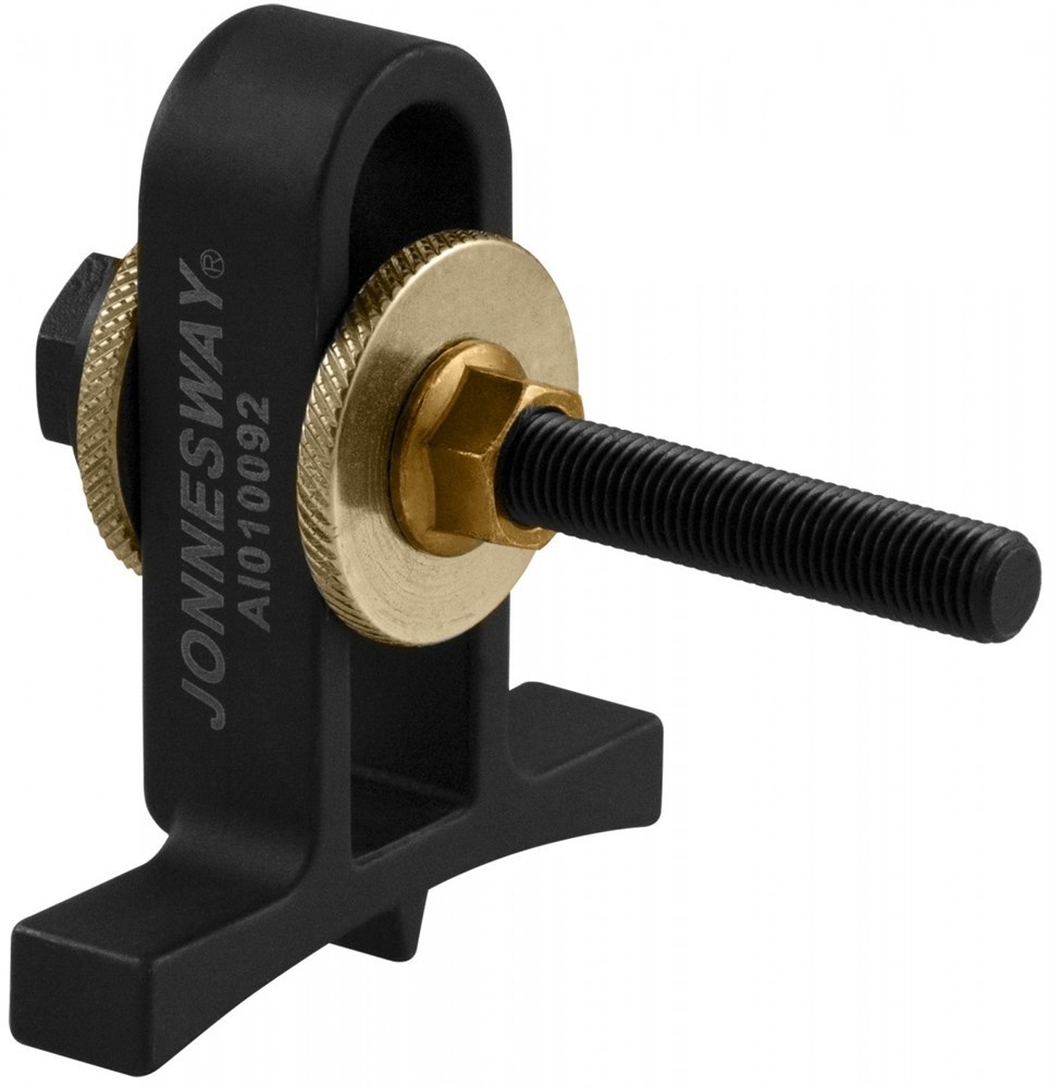 Фиксатор маховика коленчатого вала FORD, HONDA, MITSUBISHI, TOYOTA и т.д. Jonnesway AI010092 применяется для предотвращения проворачивания коленчатого вала двигателя при производстве работ по обслуживанию и настройке ГРМ. Изделие блокирует коленчатый вал, удерживая его за зубчатый венец маховика. Рекомендуется при обслуживании автомобилей марок: FORD, HONDA, MITSUBISHI, TOYOTA и подобных.