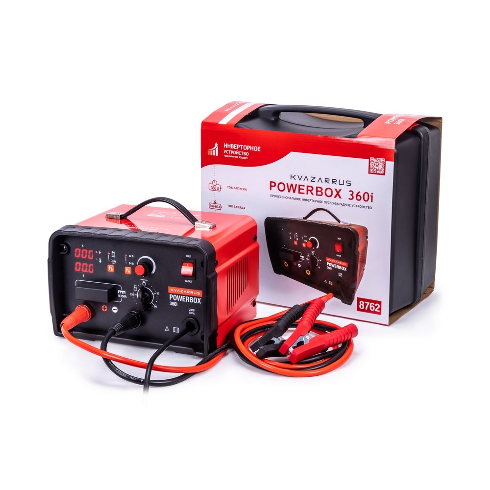 Инверторное пуско-зарядное устройство FoxWeld KVAZARRUS PowerBox 360i пластиковый кейс - профессиональное инверторное пуско-зарядное устройство, которое работает от однофазной сети 230 В / 50 Гц и подключается к стандартной розетке 16 А.