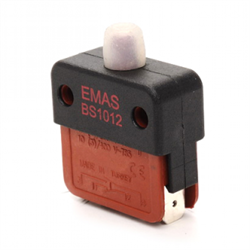 Кнопочный мини-выключатель мгновенного действия EMAS с силиконовым колпачком 1НО+1НЗ BS1012E предназначен для коммутации электрических цепей управления переменного тока частотой 50(60)Гц номинальным напряжением 250В под воздействием управляющих упоров в определённых точках пути контролируемого объекта.