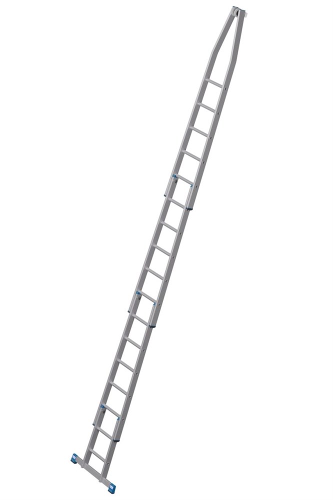 - Настенные ролики: верхняя часть лестницы оборудована настенными роликами и износостойким контактным блоком для работы на углах домов и оконных профилей.