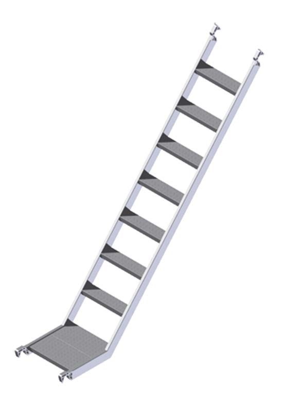Лестница наклонного подъема Zarges 42961 из алюминиевого профиля для удобного подъема и спуска, особенно с громоздким или тяжелым грузом. Длина вышки (м) – 1,8. Длина лестница (м) – 2,15. Глубина ступени (м) – 0,10. Габаритная ширина подъема (м) – 0,43. Масса (кг) - 8,8.