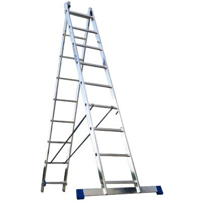 Алюминиевая двухсекционная лестница Алюмет H2 2х11 5211 выполняет функции как лестницы-стремянки, так и приставной лестницы.