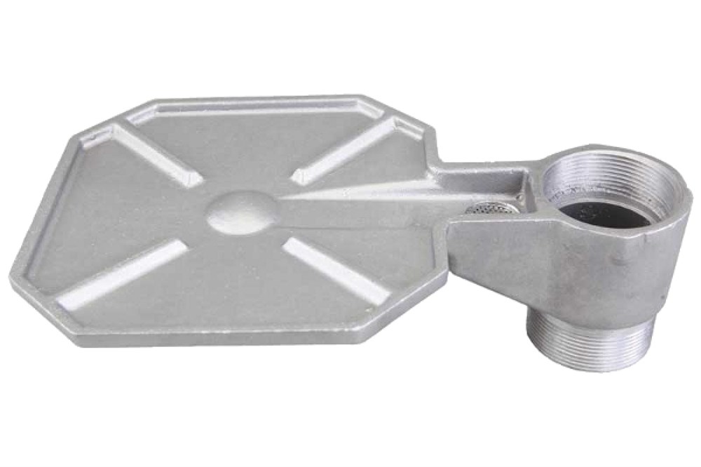 • Литой алюминиевый поддон с 2” внешней и внутренней резьбой подходит для любых насосов с 2” гайкой для крепления в отверстии.