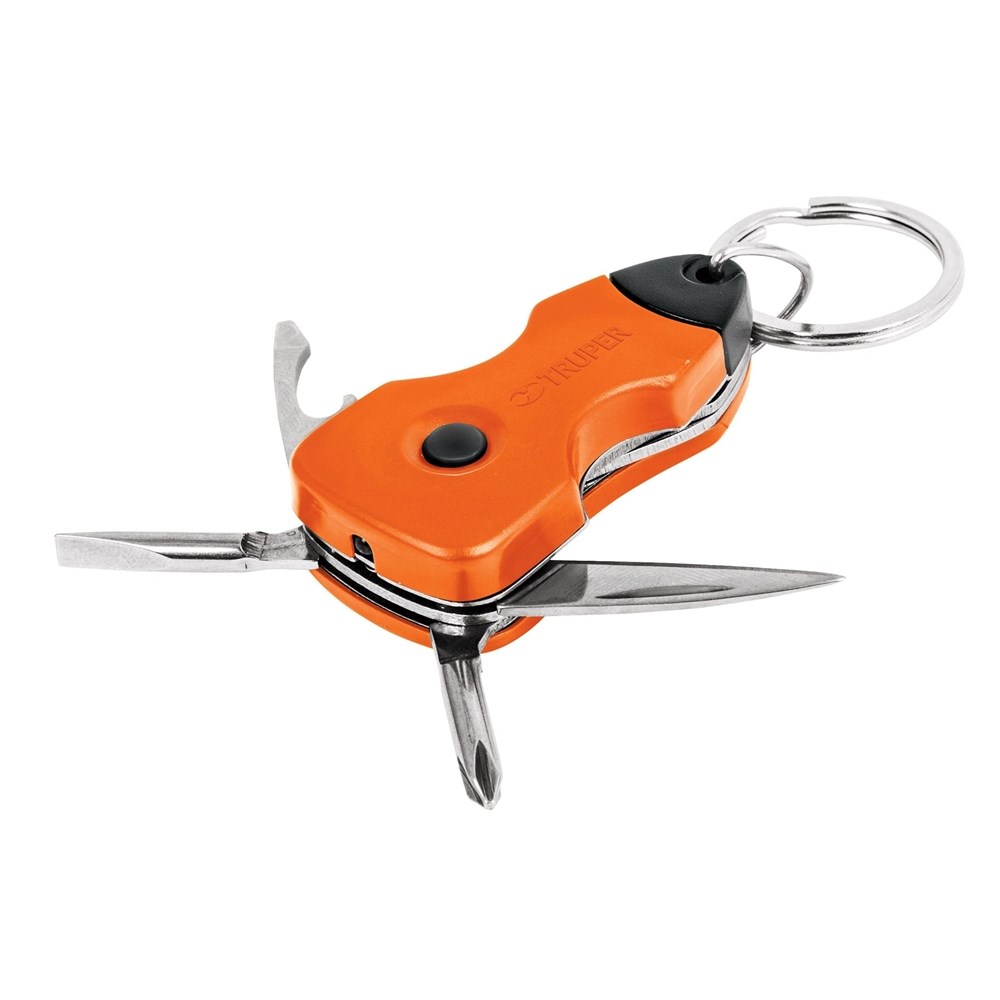 Мультиинструмент Truper NAMU-LL 13336 — компактный многофункциональный инструмент-брелок с 6 полезными функциями и встроенным светодиодным фонариком. Корпус выполнен из прочного алюминия, а лезвия изготовлены из нержавеющей стали, что обеспечивает долговечность и надежность в использовании.
