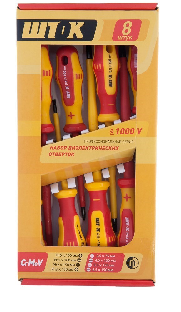Набор диэлектрических отверток ШТОК 8шт 1000В 09905 предназначен для проведения электромонтажных работ.