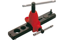 Набор для развальцовки и расширения медных труб Super-Ego до 3/4" 490030000 предназначен для изготовления точных простых и двойных бортиков под 45° на медных, латунных, алюминиевых и тонкостенных стальных трубах диаметром от 3/16” до 3/4”. Конус из нержавеющей стали. Гладкие и точные бортики, с минимальными усилиями, даже на больших диаметрах труб. Конус из нержавеющей стали для контролируемой развальцовки без образования трещин. Четко обозначенные размеры трубы на матричном основании. Зажимной механизм имеет фланец для крепления тисками.