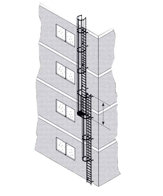 Наружная пожарная лестница Zarges Z600 алюминиевая, 16,8м 58668 - многоходовой вариант доступа в здание и к машинам через переходную платформу. Для стационарного монтажа согласно стандартам BGV D 36 и DIN 18 799-1, DIN 14 094-1 и EN ISO 14 122-4. Настенная лестница с ограждающим кожухом по BGV D 36. Соответствие стандартам DIN 14 094 и 18 799 в части 1. Ширина лестницы: 520 мм. Стенное крепление с различными расстояниями от стены, до 600 мм по выбору. Расстояние между настенными креплениями составляет не более 2,00 м. При этом для монтажа каждой лестничной секции используют не менее двух креплений. Шкафы для предохранителей, блокировка проходов, а также площадки можно выбирать по требованию. Нестандартные лестницы изготавливаются на заказ. Примечание: Дюбели и винты для крепления к стене в комплект поставки не входят. Приведенные ниже двухступенчатые цены на оборудование рассчитаны следующим образом: настенное крепление U-образной формы, 200 мм жесткие, с обеих сторон прямые тетивы на выходных участках, переходная платформа, включая решетчатую защиту спины согласно\ DIN 18 799-1. Если ваши требования отличаются, просим воспользоваться нашей системой планирования стремянок.