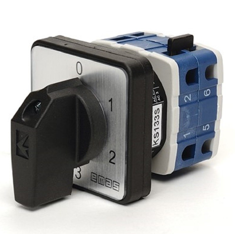 Однофазный многоступенчатый переключатель EMAS (0-3), 25А PSA025KS133S представляет собой механическое устройство без собственного потребления электроэнергии и предназначен для установки в качестве коммутационных аппаратов в электрических цепях. Также может использоваться как главный выключатель или групповой переключатель для управления приводами на основе одно-и трехфазных двигателей, переключения с требуемой программой коммутации цепей управления, сигнализации, в измерительных цепях. Используется в электрических цепях переменного тока напряжением от 220 до 400 В.
