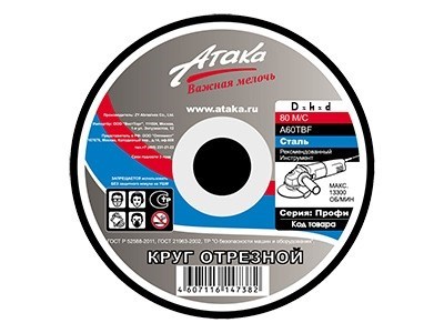 Отрезной круг по металлу АТАКА 115x2.5x22 1458890 предназначен для установки в углошлифовальные машины и проведения работ с металлическими изделиями. Для изготовления отрезного круга используются высококачественные порошки, а на каждом этапе производства осуществляется двойной автоматический контроль качества. Работа с применением отрезного круга протекает в условиях минимальной вибрации, в результате получается аккуратный рез, с отсутствием неровностей и заусенцев.