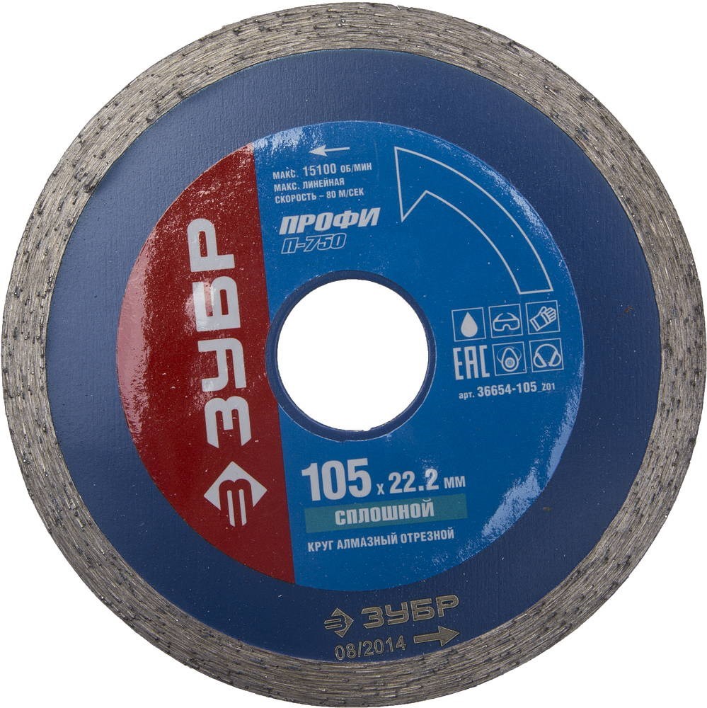 Отрезной диск Зубр, алмазный, сплошной, 22,2х105мм 36654-105_z01 применяется в угловой шлифовальной машине для резки с применением охлаждающей жидкости: