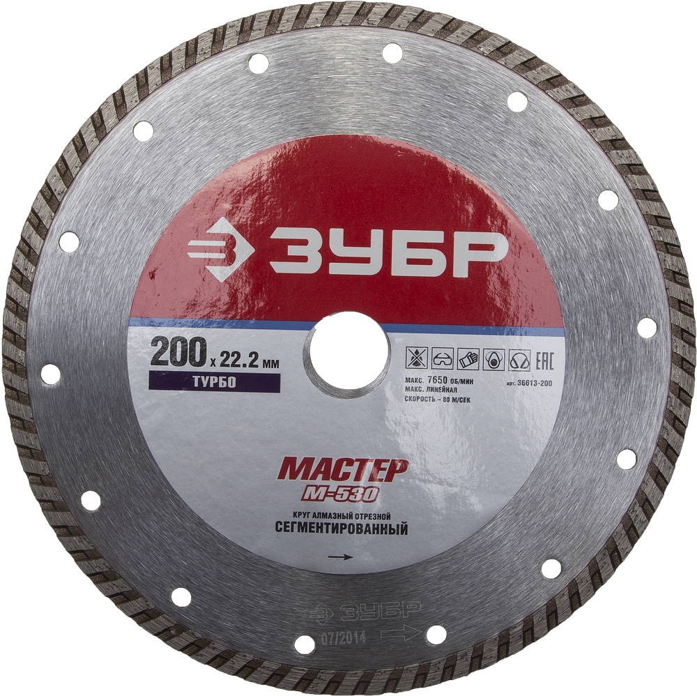 Отрезной круг Зубр "Мастер-Турбо" алмазный, сегментный, 22,2х200мм 36613-200 имеет исключительно высокий уровень качества гарантирован комплексной системой контроля всего производственного процесса. Применяется на углошлифовальных машинах для резки: бетона, бордюрного камня, облицовочного кирпича, декоративной брусчатки, тротуарной плитки. Особая сегментированная форма вращающейся режущей кромки для превосходной производительности и точных пропилов без сколов. Воздушное охлаждение.