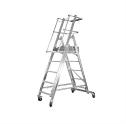 - Мягкие колеса (диам. 125 мм) позволяют без усилий перемещать лестницу-стремянку в пределах рабочей зоны. Лестница имеет два поворотных колеса с тормозом фиксаторов и два неповоротных.