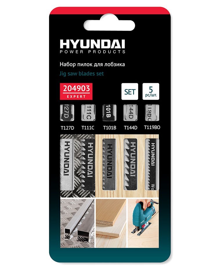 - Универсальный набор из пяти пилок разного размера для резки дерева и пластика электролобзиком