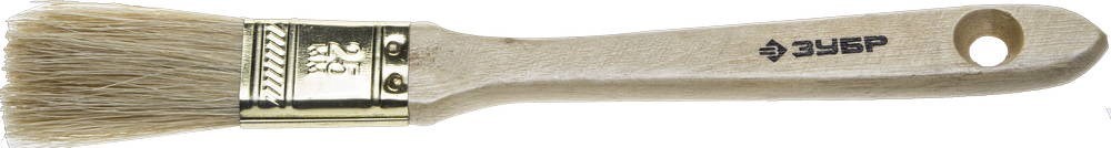 Кисть плоская ЗУБР "Универсал-Эксперт" Зубр 4-01005-025 - кисть из натуральной щетины отлично впитывает, удерживает и равномерно распределяет ЛКМ по обрабатываемой поверхности благодаря природному расщеплению кончиков щетины и наличию на ней микроскопических чешуек. Предназначена для работы с красками, эмалями, лаками на масляной основе и иными ЛКМ. Светлая натуральная щетина высокого качества. Удлиненная деревянная ручка для удобства в работе с отверстием для подвески. Высокое качество изготовления, необходимое для длительного профессионального использования.