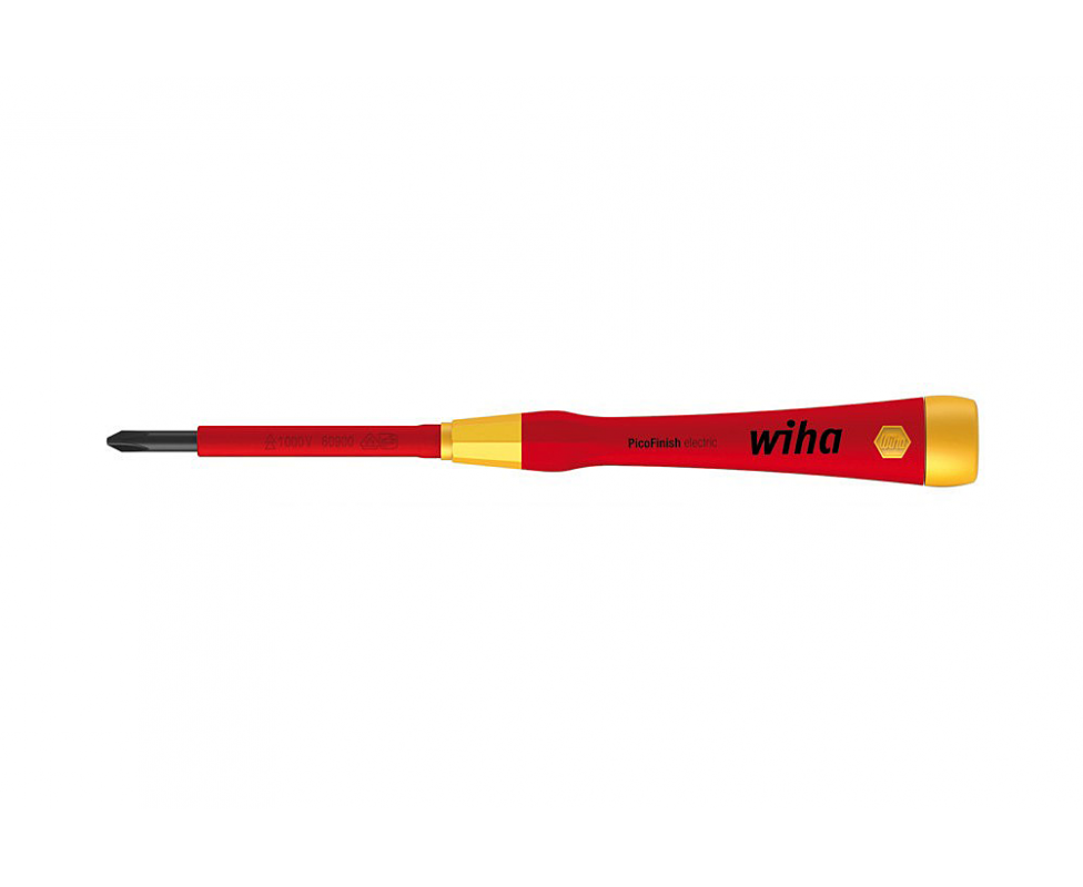 Прецизионная крестовая отвертка Wiha PicoFinish electric 2271P PH 0 x 60 мм 38880 - профессиональная прецизионная диэлектрическая отвертка с жалом из высококачественной хром-ванадий-молибденовой стали и изоляционным защитным напылением идеально подходит для тонких работ с деталями под напряжением до 1000 В.