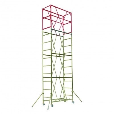 Стальная вышка-тура Svelt PROFESSIONAL NEW 2,9м PROFESSIONAL29 — профессиональные строительные леса с максимальной высотой 13,70 метров. Использование вышки гарантирует пользователям высокую безопасность при работе и простой монтаж без специального инструмента. Это модульная конструкция, образующая стабильную и устойчивую технику для работы на большой высоте и обеспечивающая свободу движений мастера благодаря просторной площадке. Максимальная нагрузка на составляет 200 кг/м2, что позволяет одновременно находиться на площадке двум пользователям. Защитное ограждение предотвратит несчастные случаи, обеспечив мастерам безопасное нахождение на высоте. Стандартная комплектация включает стабилизаторы, ограждения, настил, колеса диаметром 200 мм. Вес базы с колесами и стабилизаторами 60 кг, вес 1,20 метра вышки-туры около 30 кг. 4 колеса диаметром 200 мм, с винтовыми упорами, под каждое колесо в комплекте есть специальный оцинкованный подпятник. Усиленные, виброустойчивые узлы. Оцинкованная сталь.