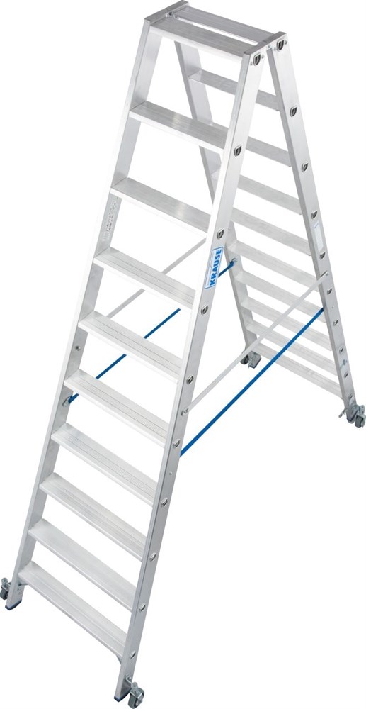 Двусторонняя стремянка Krause Stabilo передвижная 2х10 124876 - прочная двухсторонняя лестница для профессионального использования, оборудованная роликами для более быстрого и простого перемещения.