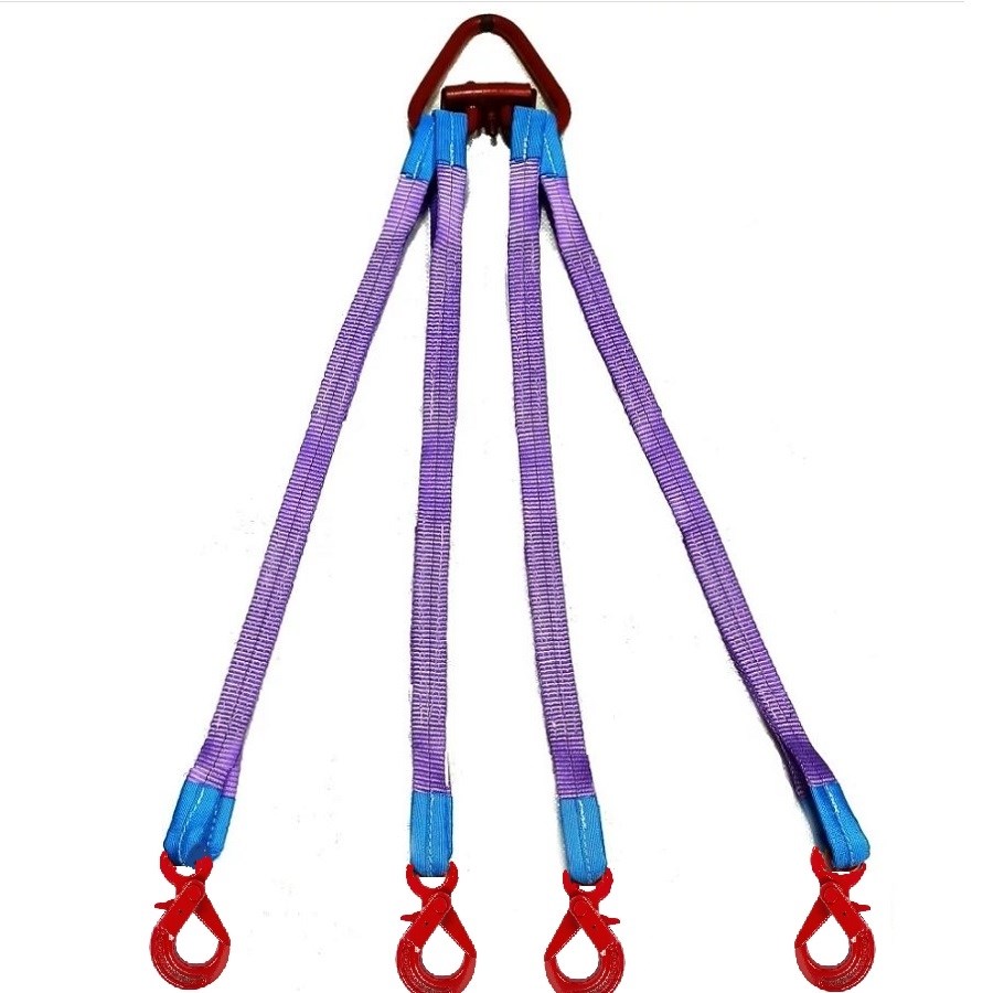 Строп текстильный TOR 4СТ 3,0 т 4,0 м 60 мм крюки самозапирающиеся - приспособление для подъема, перемещения и удержания различных грузов. Конструктивно он состоит из стального звена, к которому прикреплено 4 ветви из прочного полиэстера. На конце каждой находится крюк или иной захват, который непосредственно удерживает груз.