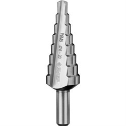 Ступенчатое сверло по металлу Зубр Профессионал 6-20 трехгранный хвостовик 29670-6-20-8_z01 - множество диаметров в одном сверле для сверления различных листовых материалов. Диаметры: 6-8-10-12-14-16-18-20мм.