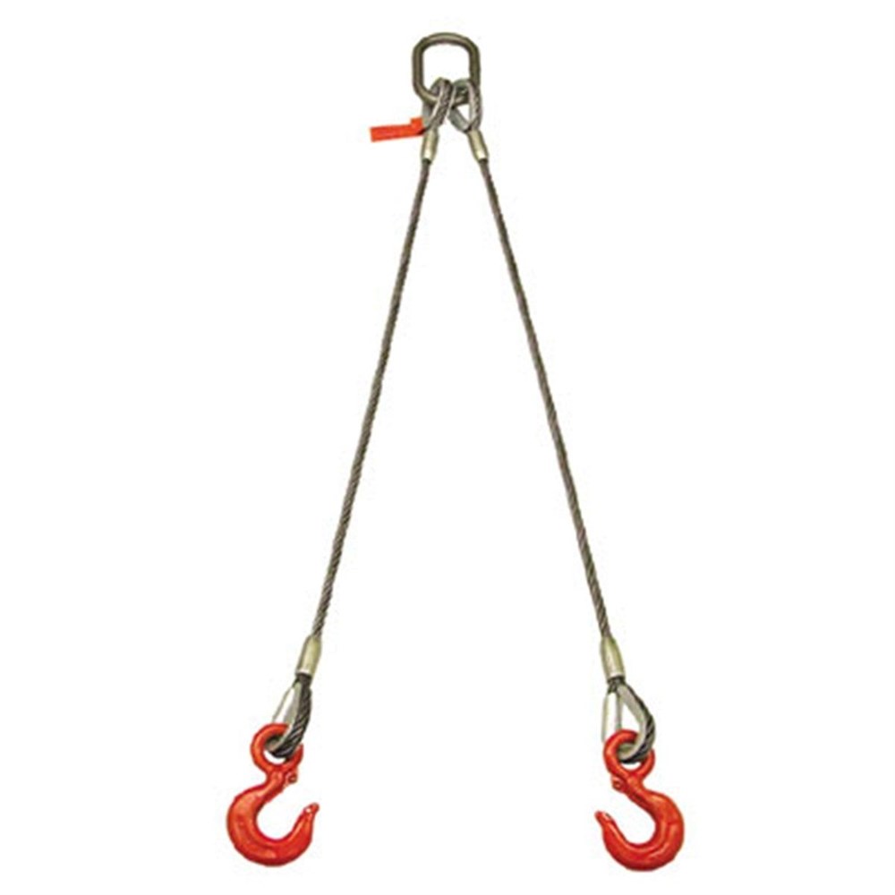 Канатный строп TOR 2СК г/п 2,0 т 7,5 м 1007359 чаще всего применяется при работе с длинными грузами для крепления в двух точках опоры. Обжим петель может происходить как с помощью зажима, так и методом заплетки. В петлю может быть установлен коуш для защиты от излома и стирания.