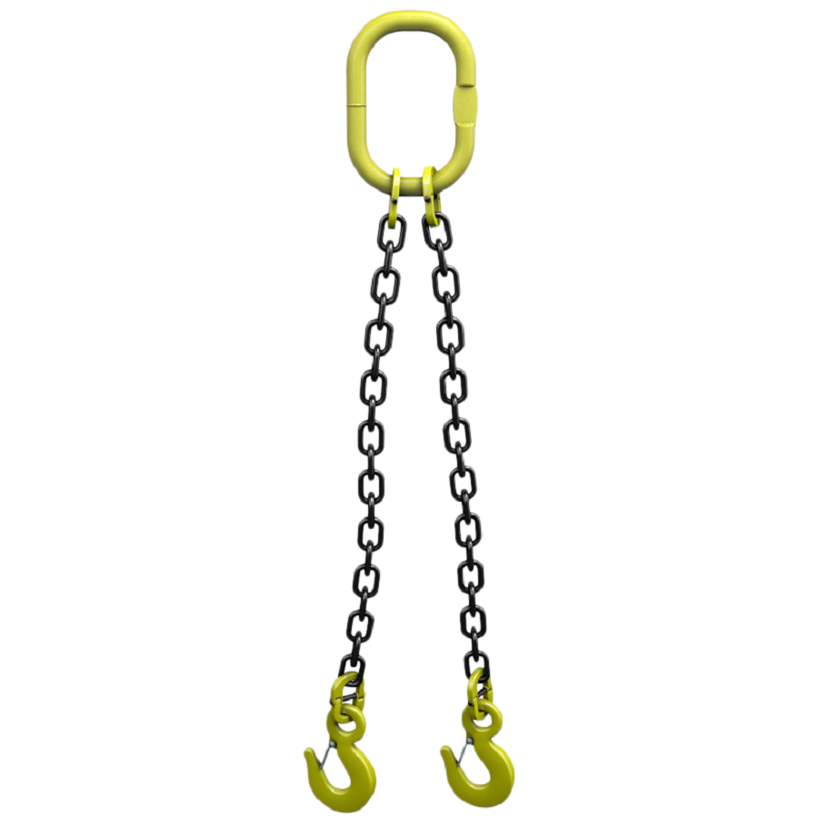 Цепной строп TOR 2СЦ г/п 7,5 т 7,5 м 1008049 состоит из двух ветвей, соединенных овальным звеном, с грузозахватными крюками на концах.