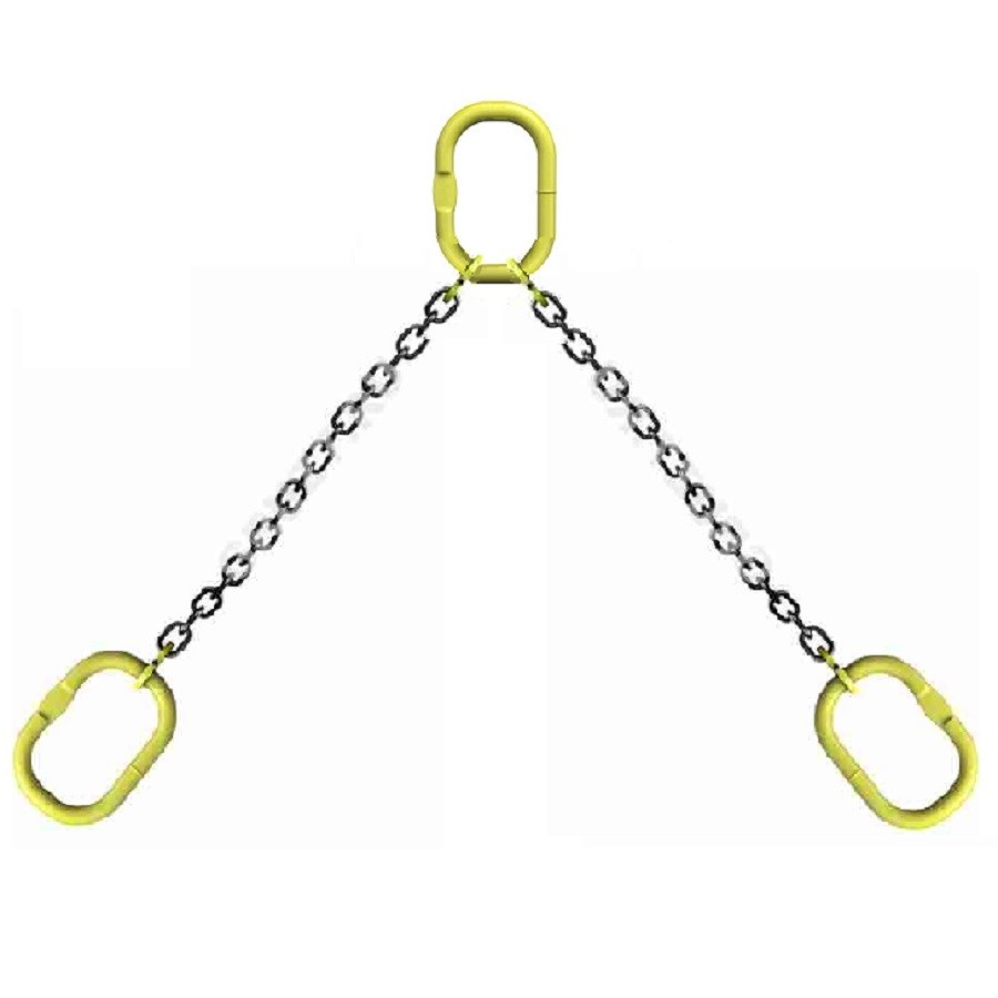 Цепной строп TOR 2СЦ г/п 11,2 т 3,0 м с овальными звеньями вместо крюков 1021193 состоит из двух ветвей, соединенных овальным звеном, с грузозахватными крюками на концах.
