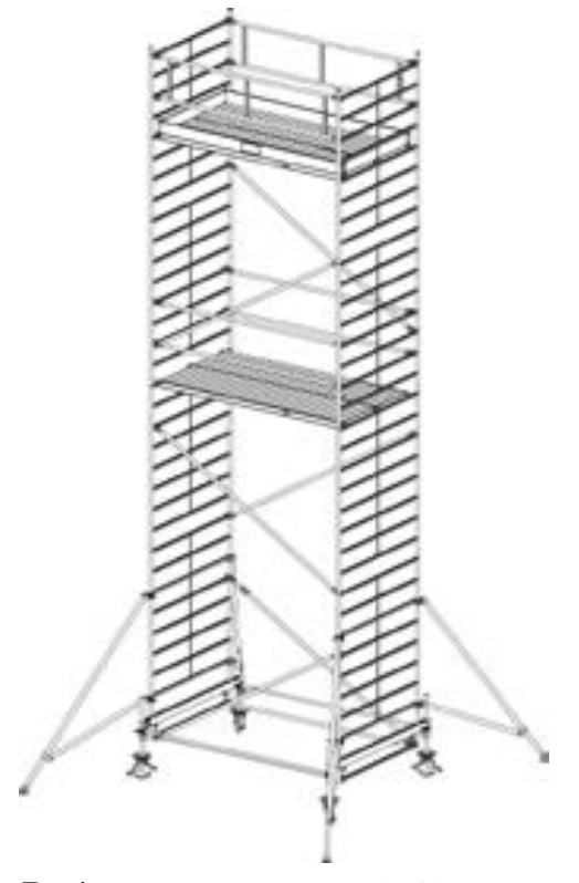 Алюминиевая вышка-тура Krause Stabilo 500 9,4м 745101 прошла проверку TUV, предельная нагрузка 200 кг/м2 (группа помостов 3) в соответствии с DIN EN 1004. Идеально подходит для рабочих высот до 14,00 м. Платформы легко навешиваются между перекладинами (шаг - 25 см). Исключаются трудоемкие операции переналадки и демонтажа. Площадка размером около 4,00 м2 безопасна и достаточно просторна для людей и материалов. Удобные вертикальные рамы легко монтируются одним человеком, профилированные перекладины обеспечивают безопасность подъема и спуска. При рабочей высоте изделия 8,40 м и более в комплект поставки включаются угловые опоры. Длина помоста: 2,50 м. Ширина помоста: 1,50 м.