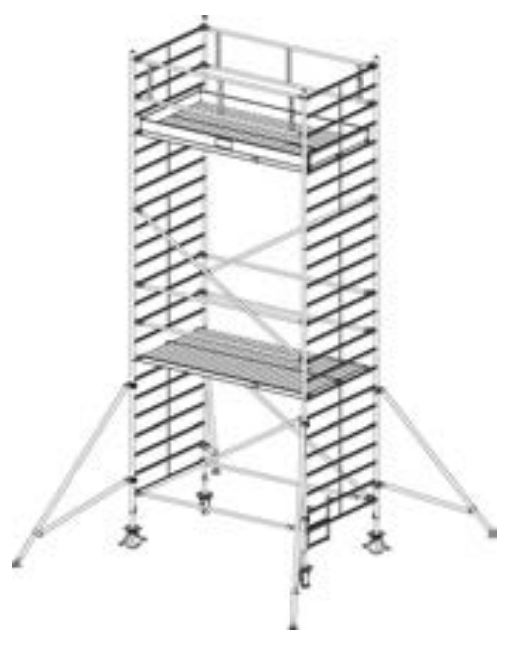 Алюминиевая вышка-тура Krause Stabilo 5000 7,3м 749079 прошла проверку TUV, предельная нагрузка 200 кг/м2 (группа помостов 3) в соответствии с DIN EN 1004. Идеально подходит для рабочих высот до 14,00 м. Платформы легко навешиваются между перекладинами (шаг - 25 см). Исключаются трудоемкие операции переналадки и демонтажа. Площадка размером около 4,00 м2 безопасна и достаточно просторна для людей и материалов. Удобные вертикальные рамы легко монтируются одним человеком, профилированные перекладины обеспечивают безопасность подъема и спуска. Угловые опоры входят в комплект поставки. Длина помоста: 2,50 м. Ширина помоста: 1,50 м.